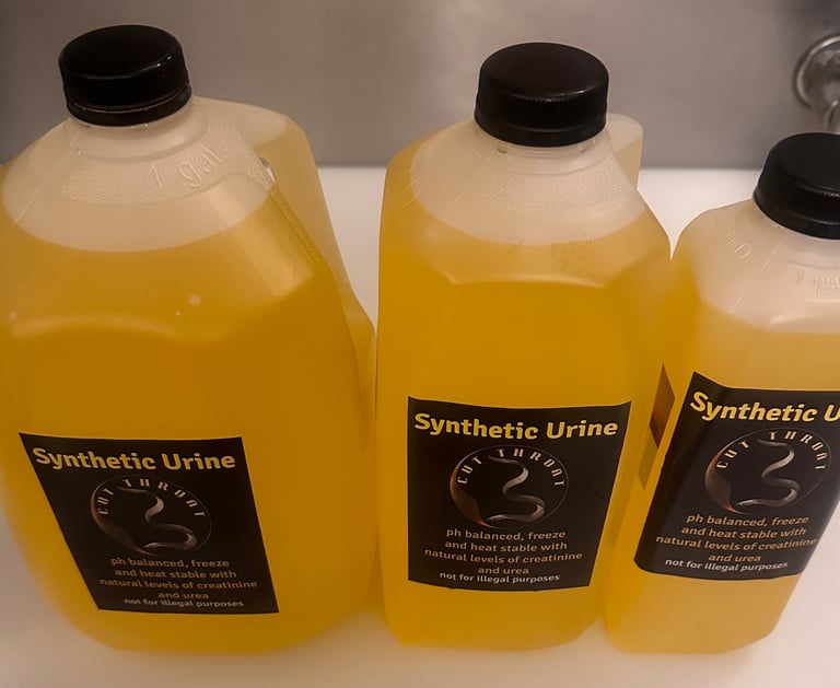 Cut Throat Urine is by far the best synthetic urine I have ever used. It is indistinguishable from real urine!
