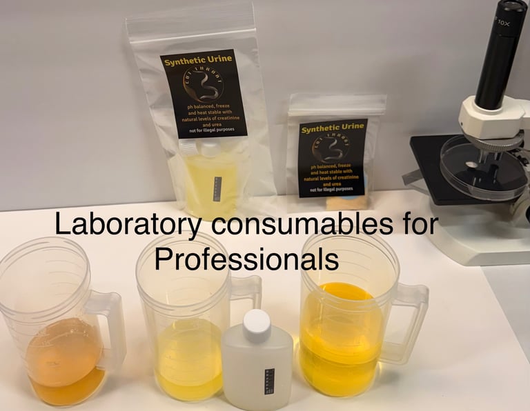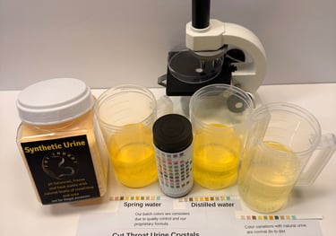 A high-quality synthetic solution that mimics the pH, specific gravity, and creatinine levels of human samples without the biohazard risks associated with real biological fluids.