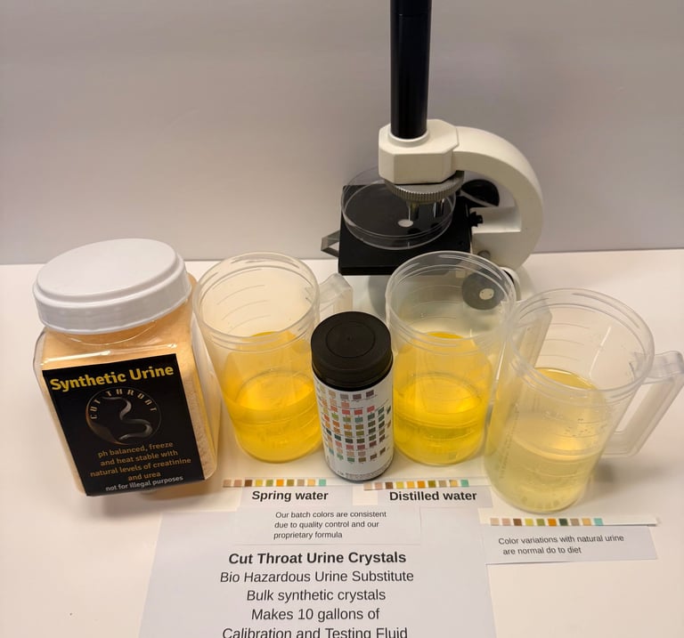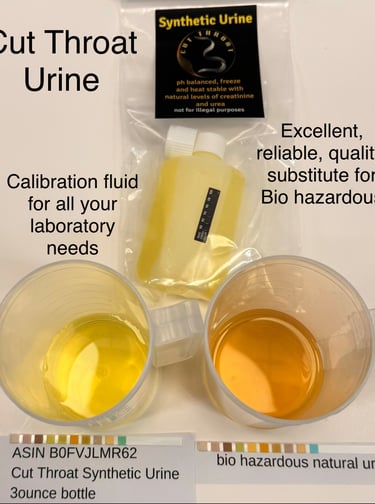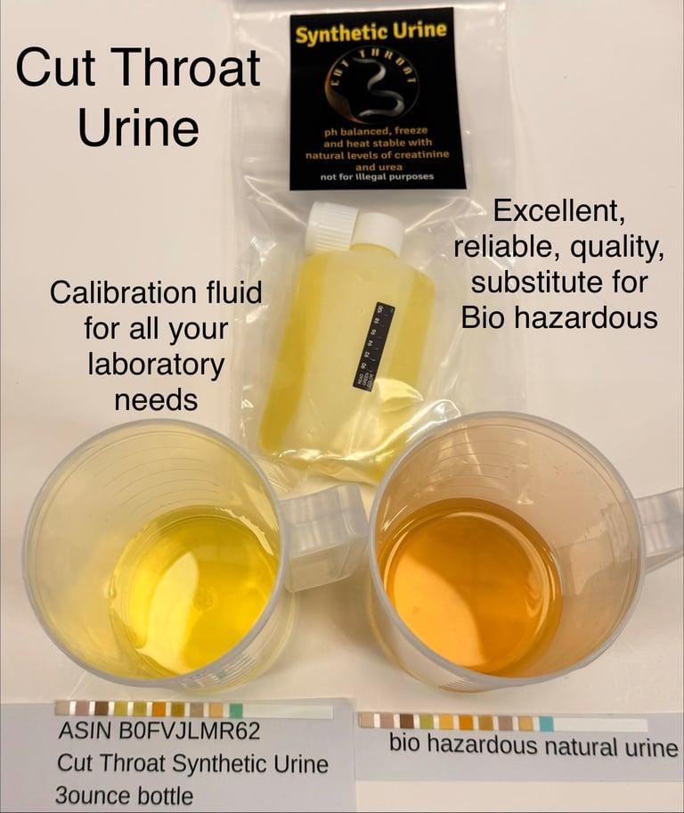 Designed for professional use in scientific and educational environments. Developed by Cut Throat Ventures LLC, this non-biological formula provides a safe, consistent, and reliable alternative to human samples for the purpose of equipment calibration and chemical analysis.